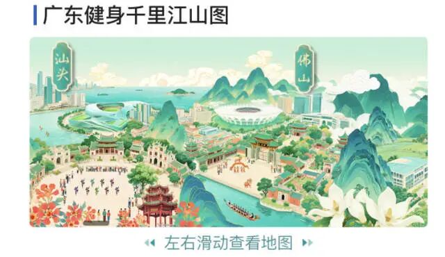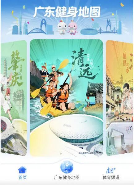 在“廣東健身地圖”首頁,用戶可以通過以走馬燈形式輪播的廣東21城體育性格海報,以及近期大火的廣東體育“千里江山圖”便捷直達當地體育場館列表。與此同時,頁面上還集成了廣東21城體育性格的全媒體報道,將體育性格與體育場館進行融合展示。依托制作方南方日報、南方+的媒體資源,“廣東健身地圖”還將提供新鮮豐富的體育日常資訊。